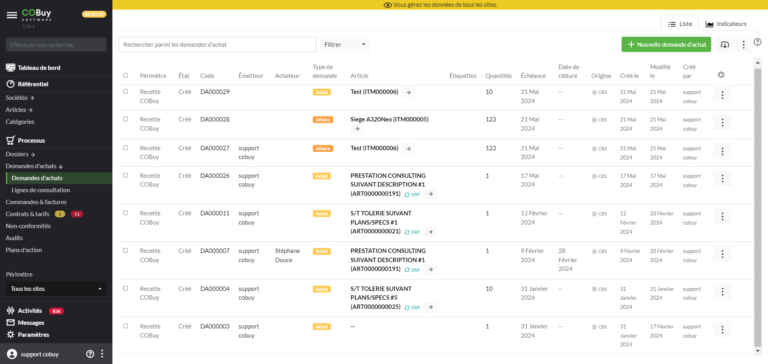 Les non conformités permettent de créer une réclamation et notifier un fournisseur d’une non conformité sur une commande. Il peut s’agir d’une non conformité qualité ou logistique (retard de livraison). En complément du suivi de la non conformité vous pouvez lui associer une dérogation et/ou un coût de non conformité.