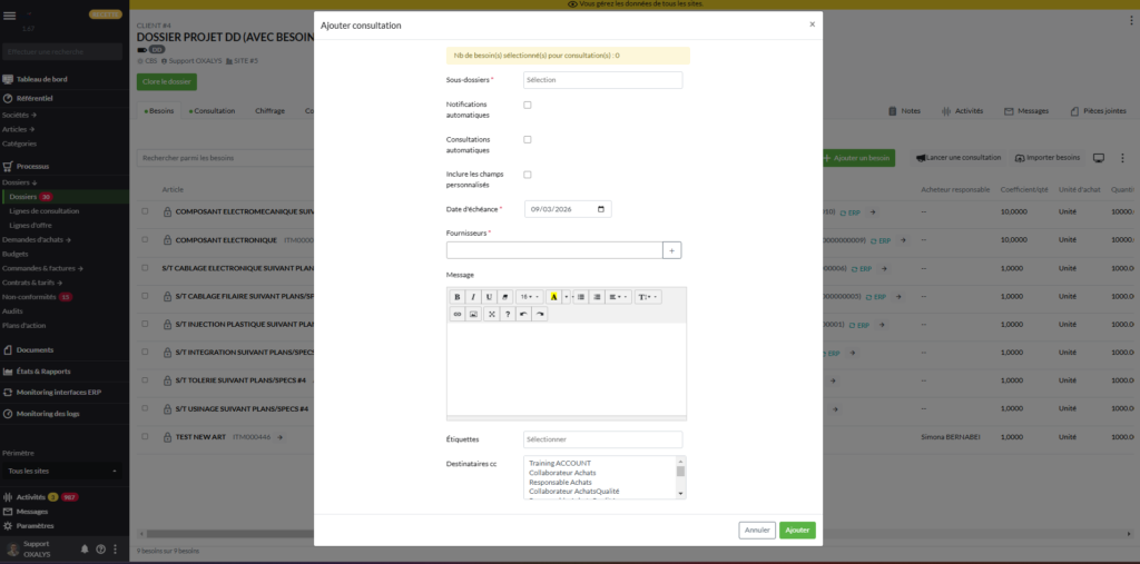 Créer et envoyer des consultations à partir d’un ou plusieurs besoin(s)