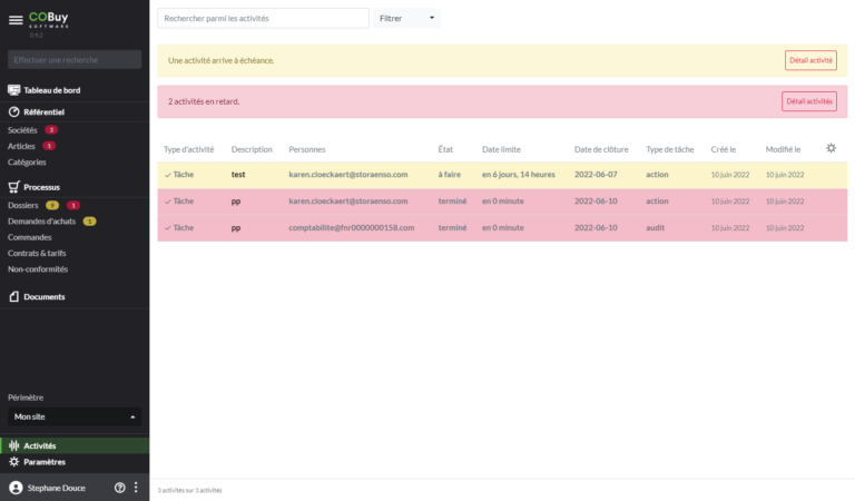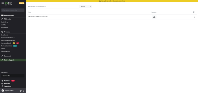 Cette section vous permet d’accéder à l’ensemble des messages créés à partir des principaux éléments de l’application (société, non conformité, contrat, …) afin d’avoir une vue globale des messages. Il s’agit des messages envoyés automatiquement par le système ou manuellement par un utilisateur.