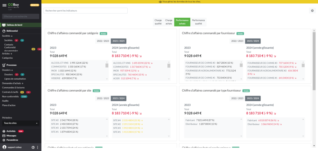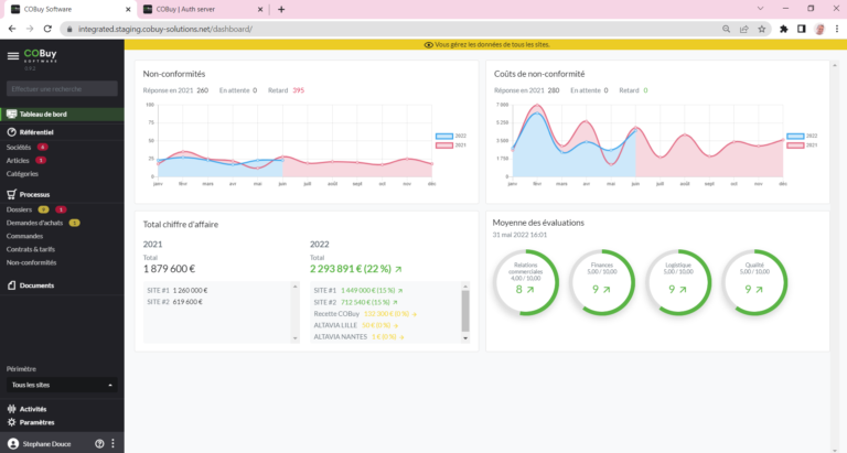 La gestion des paramètres achats permet par exemple de définir les types de contrats, les types de dossiers et demandes d’achats, les étapes d’avancement d’un dossier d’achats, les indices matières mais également les devises et les taux de changes
