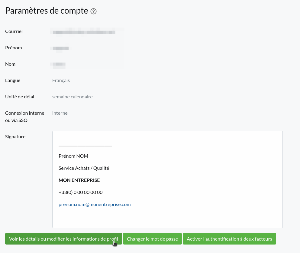 L’utilisateur peut également activer l’authentification via SSO depuis les Paramètres de compte :