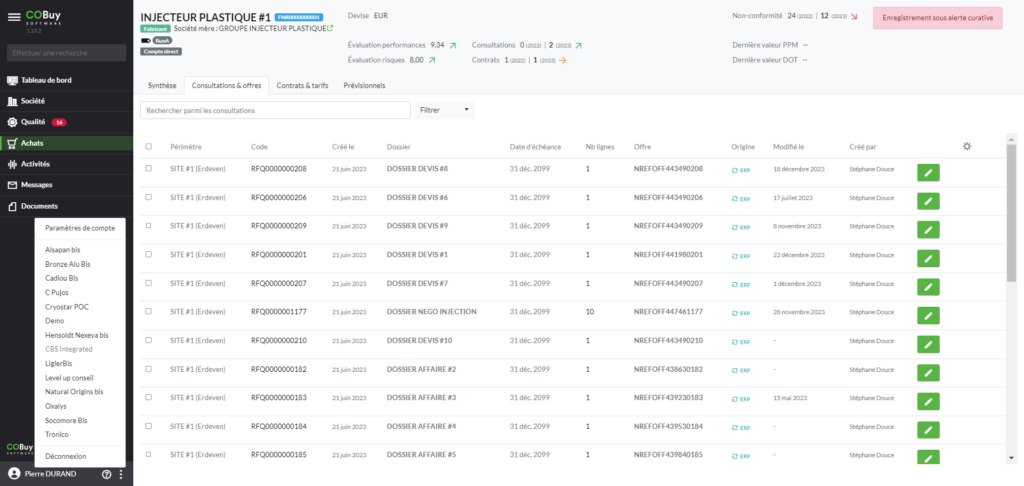 Cette section du menu principal vous donne accès aux documents que l’acheteur partage avec vous (CGA, charte RSE, communication, …)